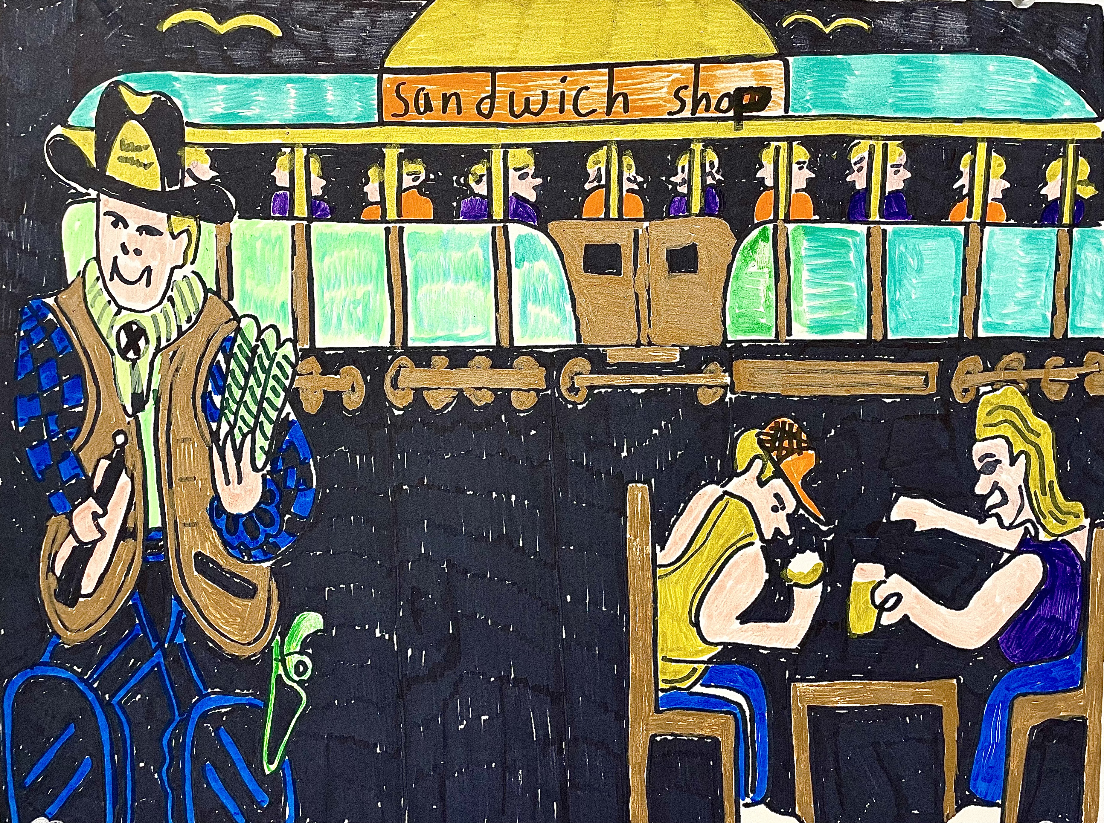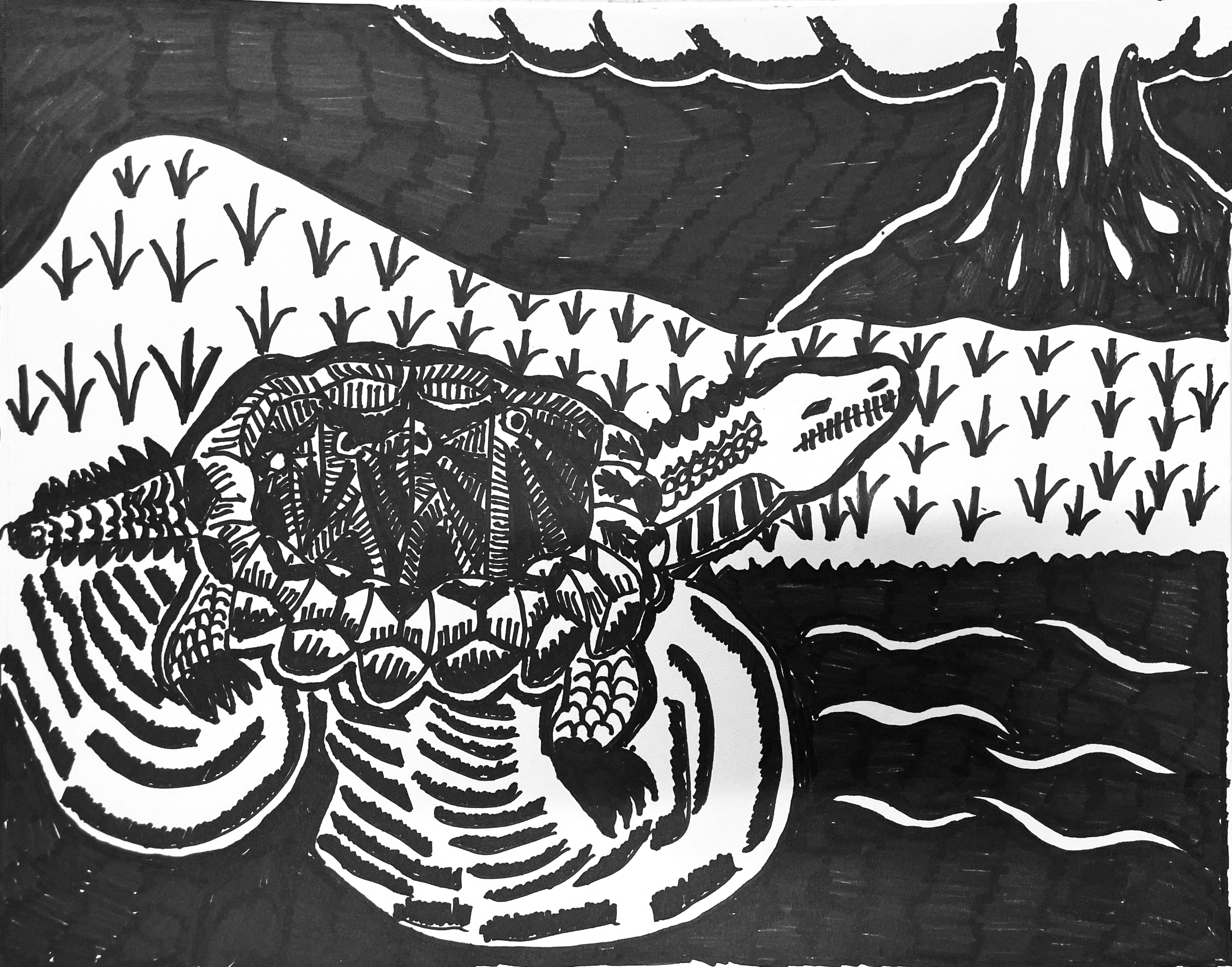 In my drawings I focus on shapes, composition and line work. I use pencil, marker and pastels to create my illustrations.