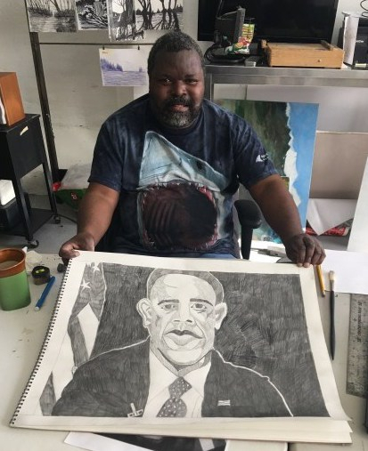 Dwayne uses drawing as a daily meditation on the world around him. His methodical practice in this activity helps him see the rhythms in the world translated into line, form and color. He finds inspiration in pop culture portraits, faces from media, places in his life, dreams, and the diverse beauty of the natural world. Dwayne works with intention, rarely erasing, each mark an elaboration of the act of drawing. Dwayne uses his practice as a contemplative response to bring his own sense of order to the constant overflow of information in the modern world.